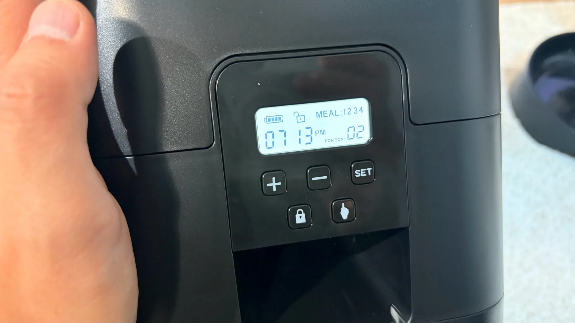 Les réglages vont jusqu'à 4 repas, ce qui est très pratique. La nourriture était répartie uniformément, ce qui m'a permis de l'utiliser confortablement 😺✨ L'écran est clair, ce qui facilite la vérification de l'heure, et la capacité est généreuse, donnant une sensation naturelle d'organisation de la gestion quotidienne des repas. Le plus important, c'est qu'il peut fonctionner avec une batterie externe ou des piles 🤭 Parfait pour les gérants de maison à la recherche de rentabilité !